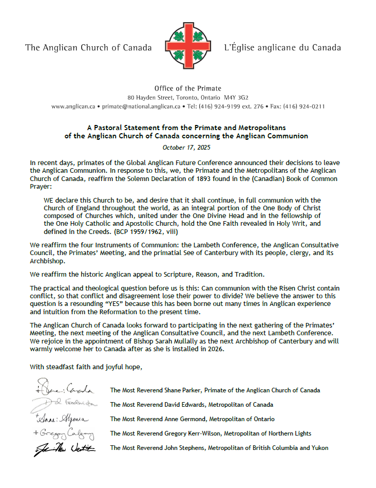 A Pastoral Statement from the Primate and Metropolitans